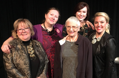 Written as part of the "Kentucky Voices" program, this comedy had its first public reading at the Public Theatre of Kentucky and was a finalist for the Roots of the Bluegrass New Play Series. The wedding dress has been worn four times — twice by Opal's mother and twice by her sister, so of course, Opal will wear it tomorrow even though the dress doesn't fit, she met the groom online, and just decided to marry him a few hours ago. From the left in the photo are Liz Fentress, who coordinated Kentucky Voices, and actors Darlene Gooch, Tanner McGuire Gallacher, Meaghan Ritchie, and myself. Emerging Theatre Indy will produce the play.