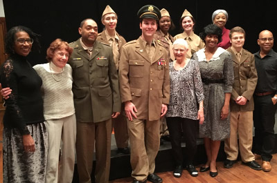 This play is inspired by the life of the first African American to command whites in the Women’s Army Auxiliary Corps during World War II. Born in 1919 in rural Kentucky and raised by a grandmother who could neither read nor write, Anna Mac Clarke fought for racial justice in the military and seemed to be defying all the odds — until death took her at age 24. Karelisa Hartigan, who heard a reading of the play at the 2017 Comparative Drama Conference in Orlanndo, directed the play at Actors Warehouse in Gainesville in 2019. This photo includes everyone involved in the 2019 production.
